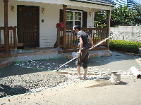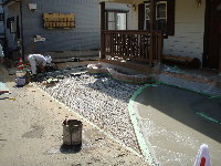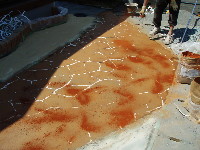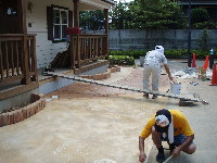 ステンシル(目地模様)をコンクリートが少し堅くなったところで貼ります